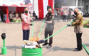 “Ya, kita apresiasi terutama pada Kajari beserta jajaran yang hari ini melaksanakan kegiatan untuk pemusnahan barang bukti yang sudah mengandung kekuatan hukum tetap. Ini salah satu bukti bahwa aparat keamanan dan APH ini bekerja dengan sangat serius,” ujar Sekda Endin usai acara pemusnahan.