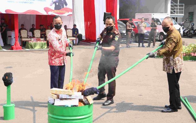 Barang bukti yang dimusnahkan terdiri dari narkotika jenis sabu seberat 674,29 gram dari 19 perkara, serta ganja seberat 5.939,55 gram dari 14 perkara. Selain itu dimusnahkan juga 19.686 butir Hexymer, 1.406 butir Tramadol, 202 butir Alprazolam, 167 butir Trihexyphenidyl, 10 butir Merlopam Lorazepam, 10 butir Misoprostol, dan 6 butir Paracetamol yang merupakan obat tanpa izin edar.