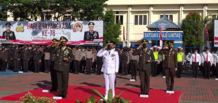 BIN | Banyumas – Momen Upacara Hari Bhayangkara Ke-76 yang diselenggarakan terpusat di Akademi Kepolisian (Akpol) Semarang menjadikan momen tersendiri khususnya bagi aparat kewilayahan Banyumas yang dilakukan prajurit TNI AD dengan anggota Bhayangkara.