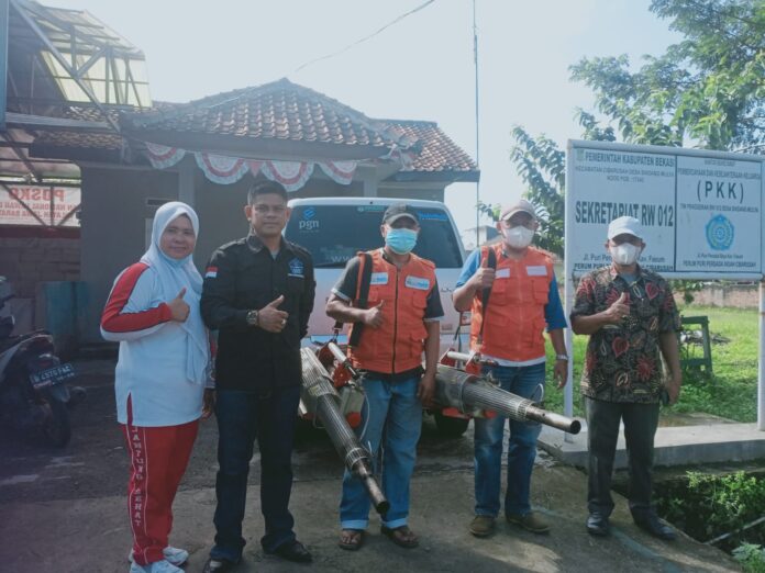 BIN I Bekasi – Dalam rangka mencegah penyebaran kasus DBD (Demam Berdarah Dengue) semakin meluas, Ketua RW 012,Malik Ibrahim, bersama para Ketua RT 001-012 Puri Persada Indah, melaksanakan giat penyemprotan fogging di sekitar wilayah RW 012 Puri Persada Indah,Desa Sindangmulya, Kecamatan Cibarusah, Kabupaten Bekasi, Minggu (27/03/2022).