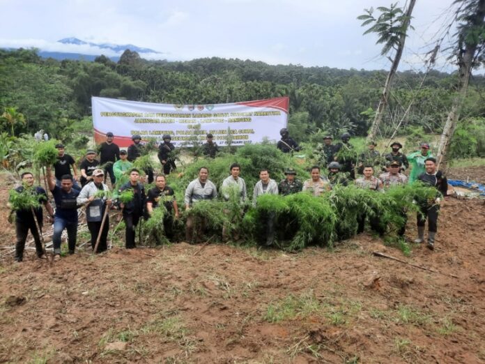 BIN I Aceh – Polisi menemukan ladang ganja dengan luas 6,28 hektar yang berlokasi di Desa Lhok Drien, Kecamatan Sawang, Kabupaten Aceh Utara, Provinsi Aceh.