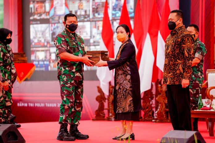 BIN | Ketua DPR RI Puan Maharani memberi pembekalan di Rapat Pimpinan (Rapim) TNI-Polri Tahun Anggaran 2022. Ia pun menyinggung mengenai dukungan untuk pencapaian Minimum Essential Force (MEF) TNI dan Grand Design Polri.
