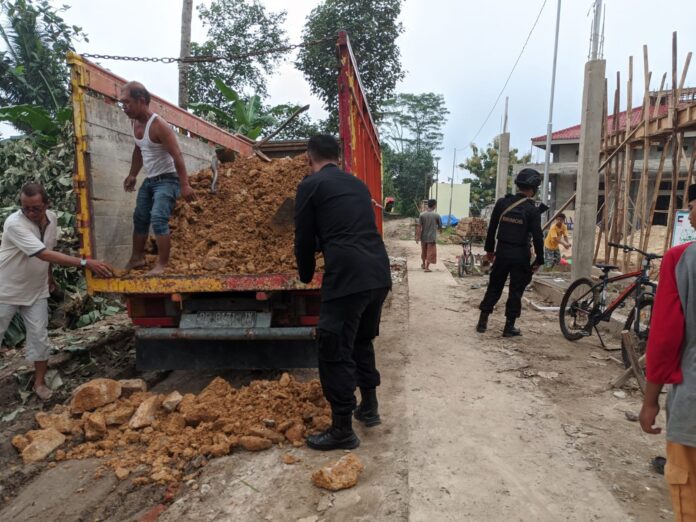 Secara bergotong royong para pengurus dan warga bahu membahu membenahi jalanan di wilayah Jalan Pesantren, RT 01 Dusun 1 Desa Bumisari, Kecamatan Natar Lampung Selatan ini agar layak dan nyaman dilewati.