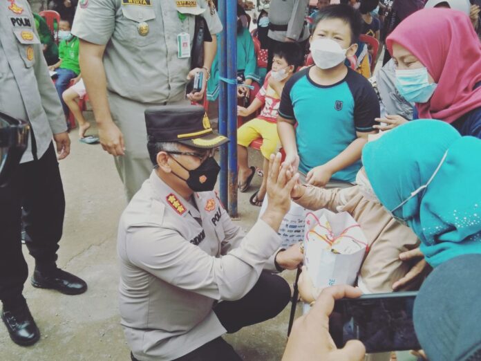 Sedikitnya, 200 anak di Desa Lambangsari mendapat vaksin yang diselenggarakan Polres Metro Bekasi.