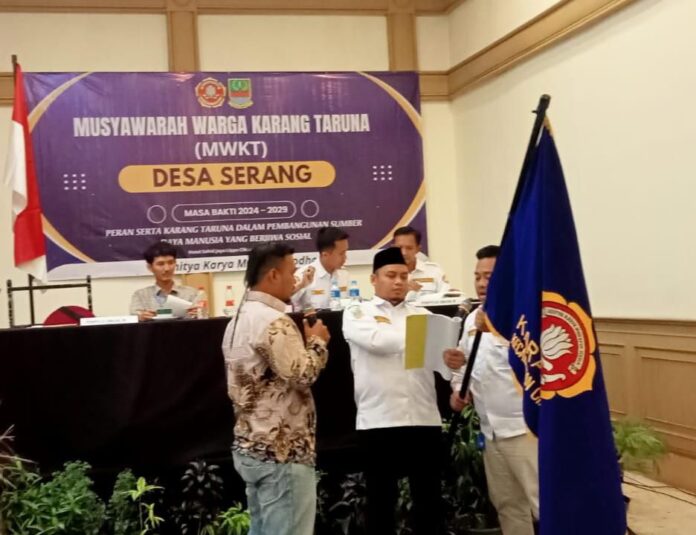BIN || Kabupaten Bekasi – Ketua Karang Taruna (Katar) Desa Serang, Kecamatan Cikarang Selatan, Yoman Yudistira, kembali terpilih menjadi Ketua Katar Desa Serang Masa Bakti 2024-2029 saat kegiatan Musyawarah Warga Karang Taruna (MWKT) yang dilaksanakan di Hotel Sahid Lippo Cikarang, Minggu (23/6/2024).