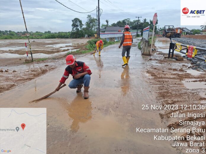 Perlu diketahui, saat ini PT JJS di proyek tol Japek II Selatan yang berada di Kecamatan Serang Baru, telah mengerahkan 16 pasukan Flagman dan WTT untuk pembersihan jalan yang kotor.